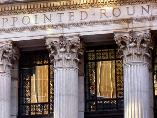 Hersey also observed such instances reproduced in immaculate detail on modern bank buildings and public offices, such as the the Department of State in Washington D. C. The role of the ruling elite in propagating these architectural forms is unmistakable. For example, Masonic lodges are completely doused with such motifs, and are even named as “temples.”